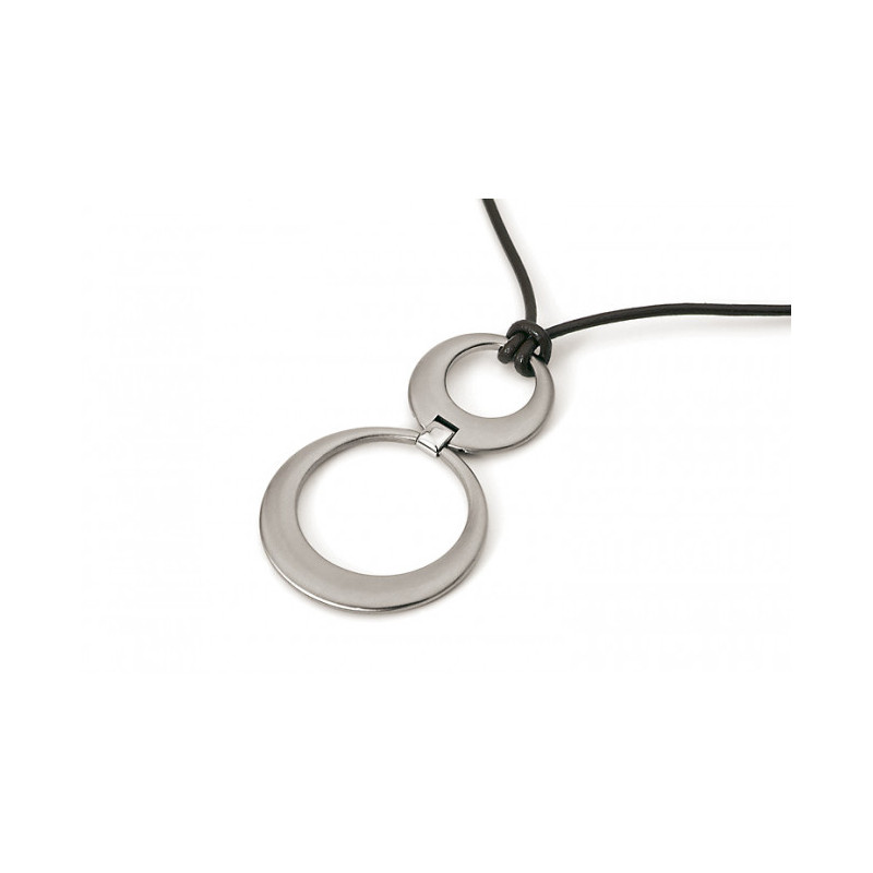 Necklace sold separately. A pendant with a modern design, all in roundness, in brushed titanium, articulated by a polished titanium motif. A suitable leather chain is available at the bottom of the page.