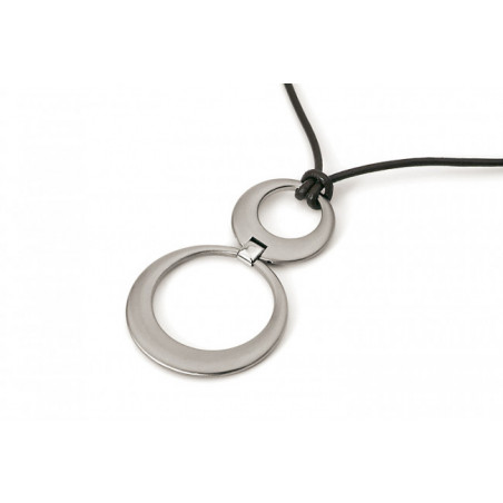 El collar se vende por separado. Colgante de diseño moderno, todo redondo, en titanio cepillado, articulado para un motivo de titanio pulido. Un cordón de cuero adecuado está disponible en la parte inferior de la página.